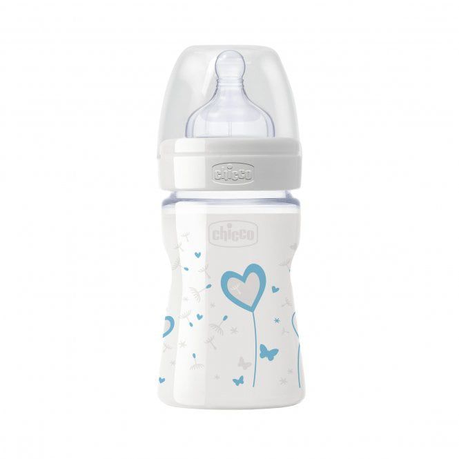 CHICCO - Mamadeira de vidro estampa corações, 150ml